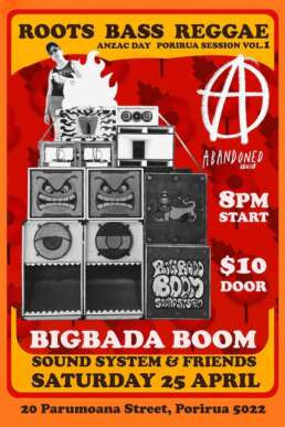 Join Bigbada Boom Sound System on Anzac Day for a night of roots, bass, reggae and sound system culture. With Queen Big Punch on the controls and friends.
